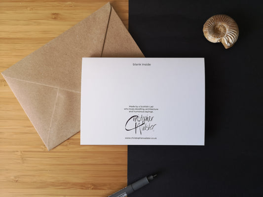 Black and white illustrations of skylines, landmarks, funny slogans and cute little cartoons.
