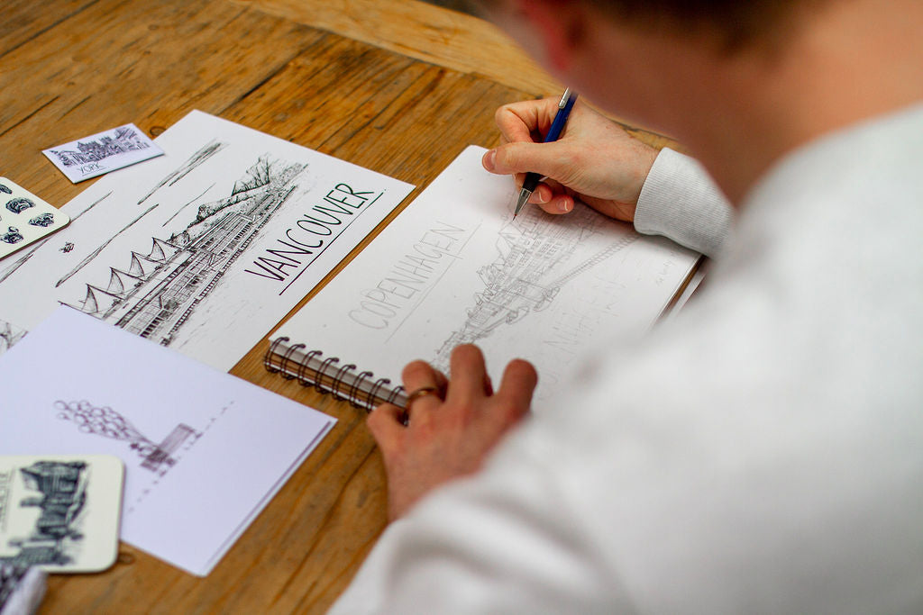 the skylines are located. The guest names then placed underneath the skyline which is also placed around the outside of the map.