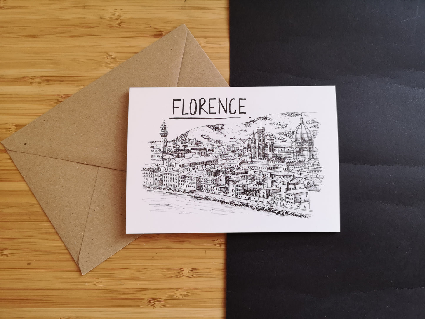 This Florence cityscape illustration is a hand drawn piece from myself. It will be perfect for anyone who loves this city and has a birthday coming up. Or you could get it for that couple who are getting married. Loads of different events, including a house warming, leaving or anniversary card.