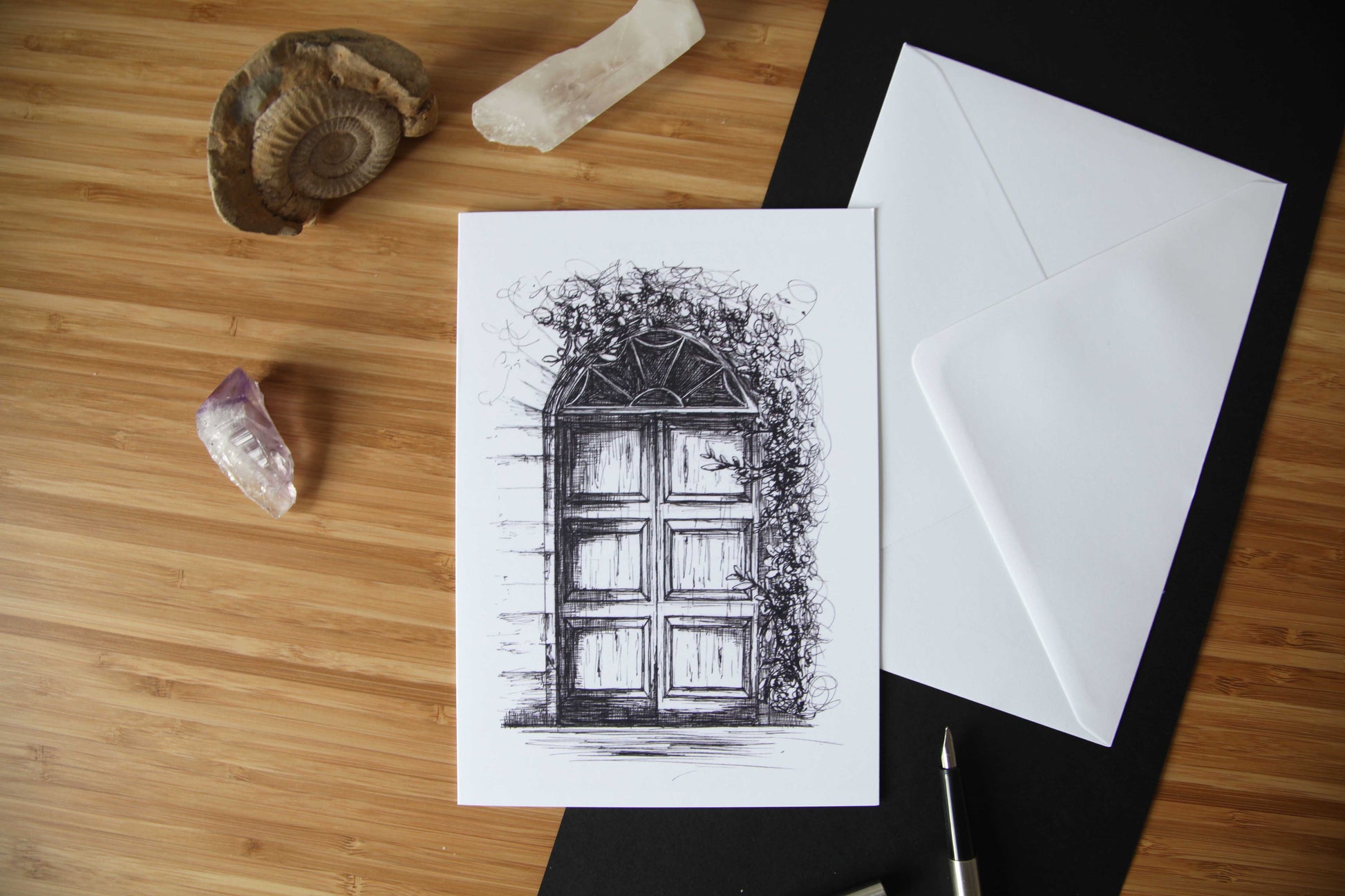 This line drawn art card of an old door will be perfect for that wedding or if you need a bereavement card and want to send your thoughts. This will be a lovely piece to send off. It is one of my more formal/traditional pieces and think it creates that feeling of a new beginning with what could be behind the door.