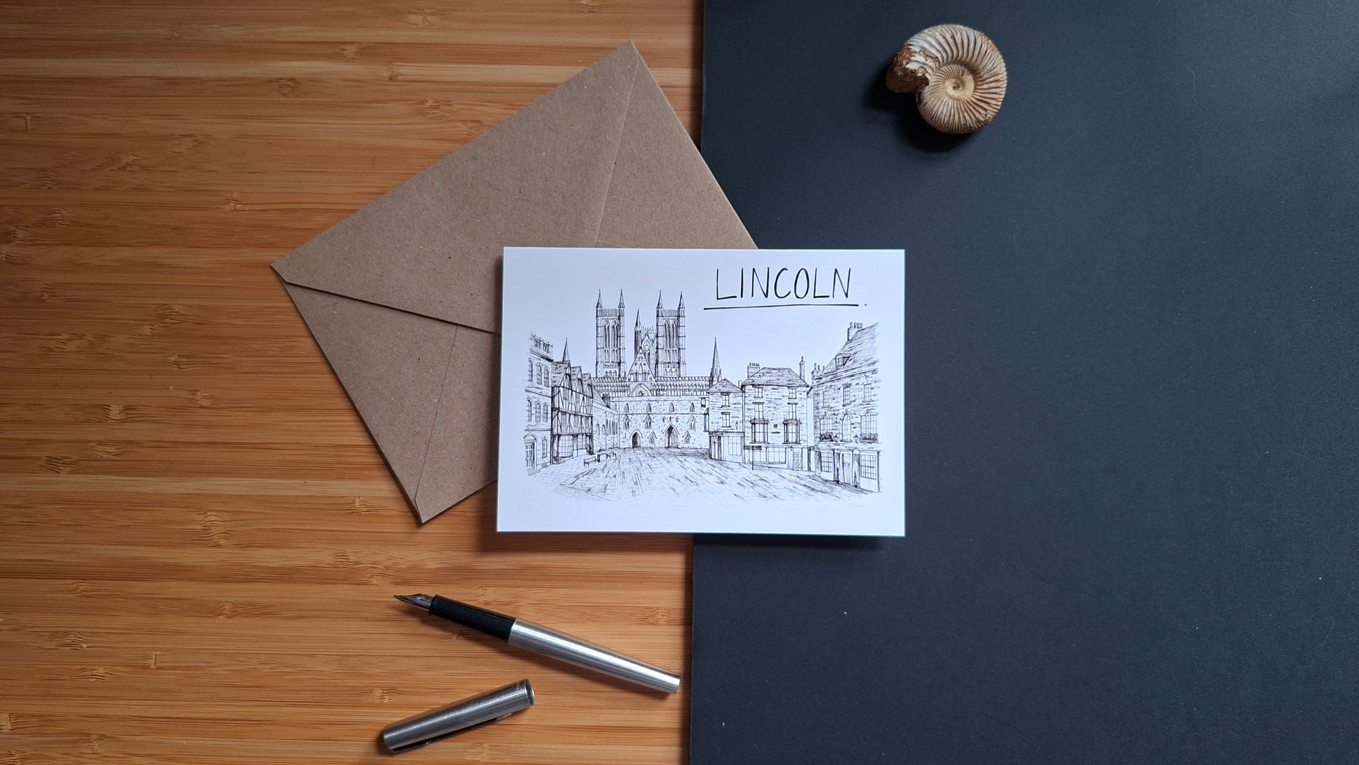 This Lincoln skyline is an illustration done by myself which features the old town and Lincoln Cathedral.