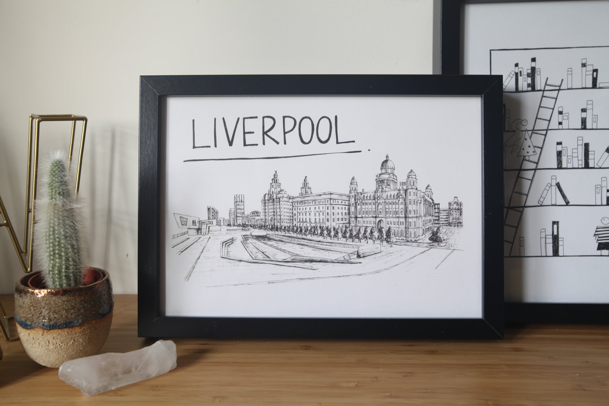 This black and white illustration print will make a great art gift for that Liverpool lover.