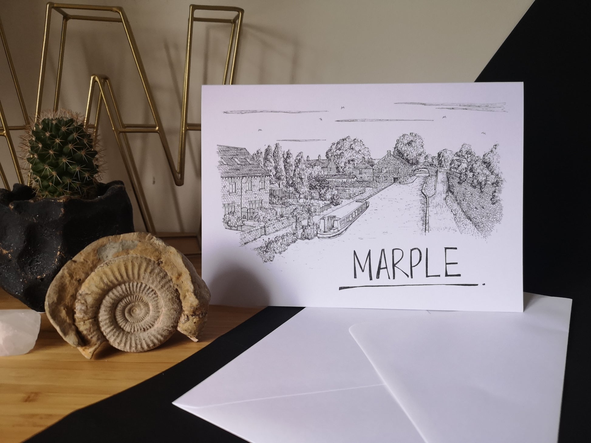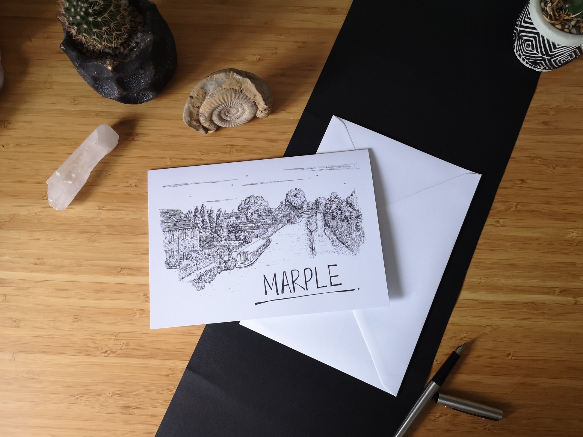 This monochrome illustration of Marple which is in South Greater Manchester, is an original drawing from myself.