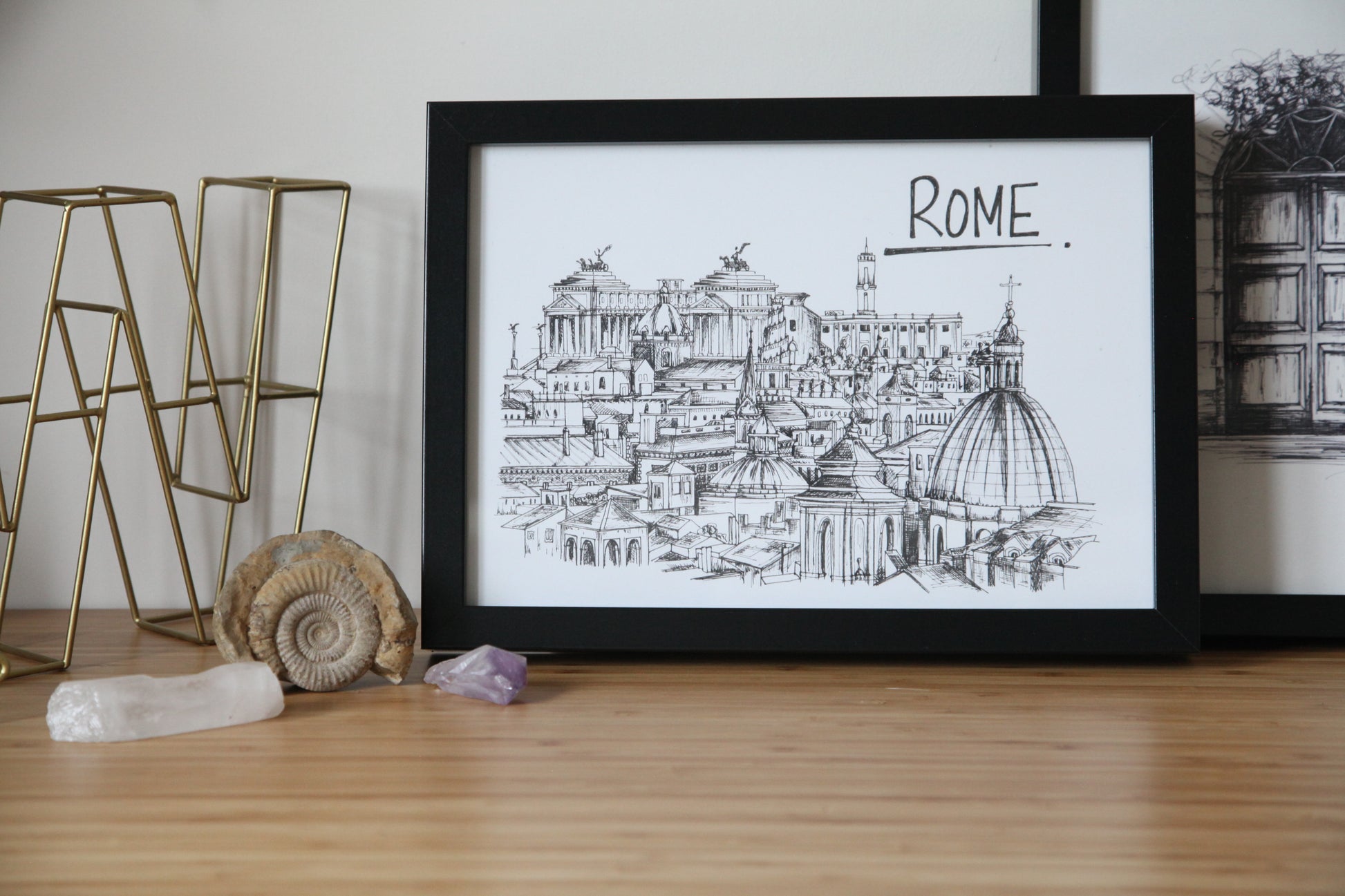 This Rome skyline illustration has been hand drawn by myself and slightly edited on photoshop to sharpen up the image.