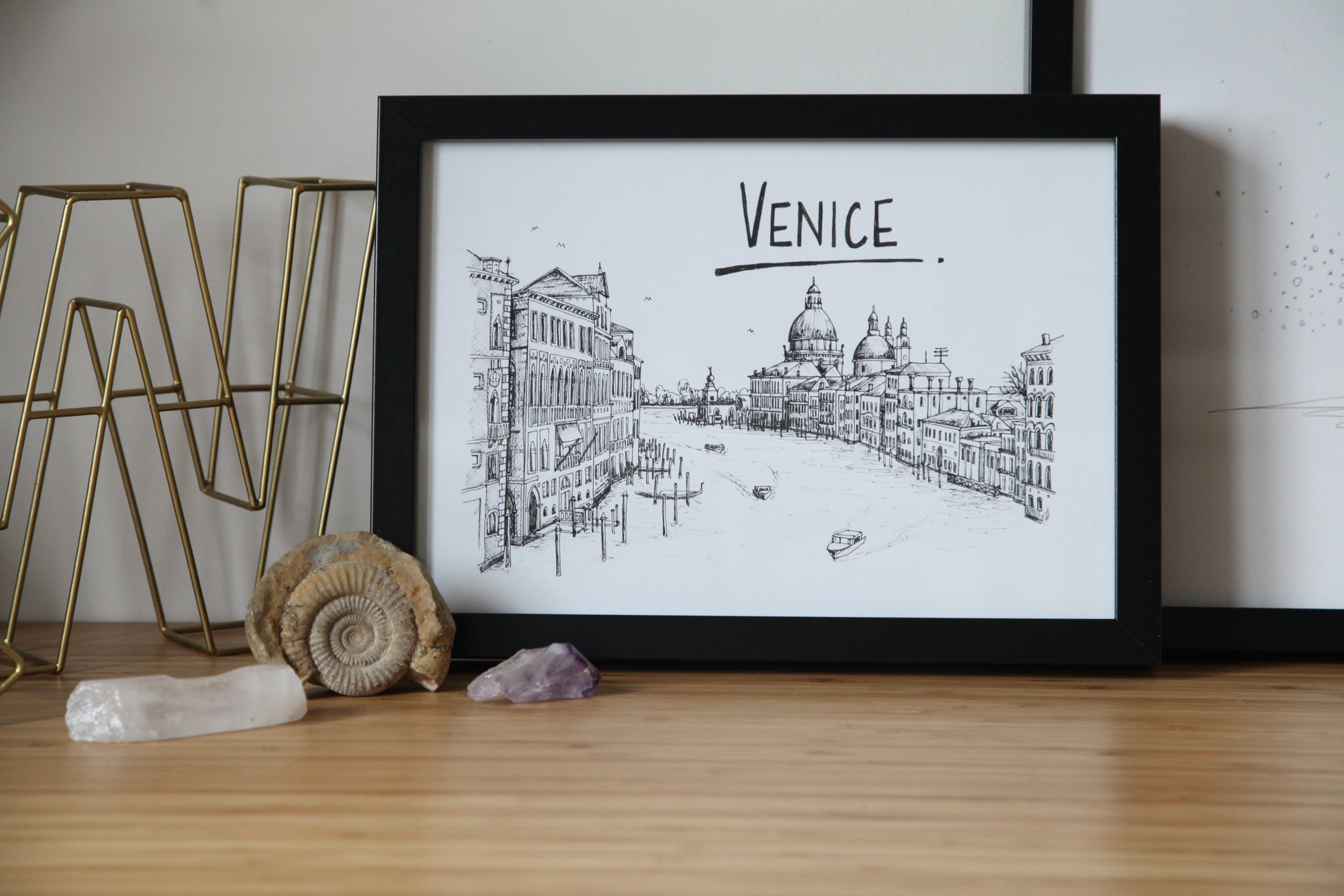 Self drawn by myself inspired by a past trip I took there. I wanted to include the Campanile Di San Marco in the background as its one of the main landmarks of this stunning city and captures a lot of memories not only for myself, but for others too. So this illustration print will make a fantastic gift for that loved one, or a keepsake for yourself if you've taken a recent holiday, honeymoon, anniversary or birthday trip there.